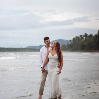 Like myself, Doug and Morgan are from Arizona! They eloped on November 11, 2024 at 8:00am. We found a quiet and secluded spot in a grove of trees on the beach by the boutique hotel called Ocho, in Tamarindo, Costa Rica. Her dress was stunning and all three of us were barefoot. We had a lot of laughs and tear-up moments during the ceremony. The couple opted for music, which really added to the drama and sentiment, not to mention the romance with a slow dance.